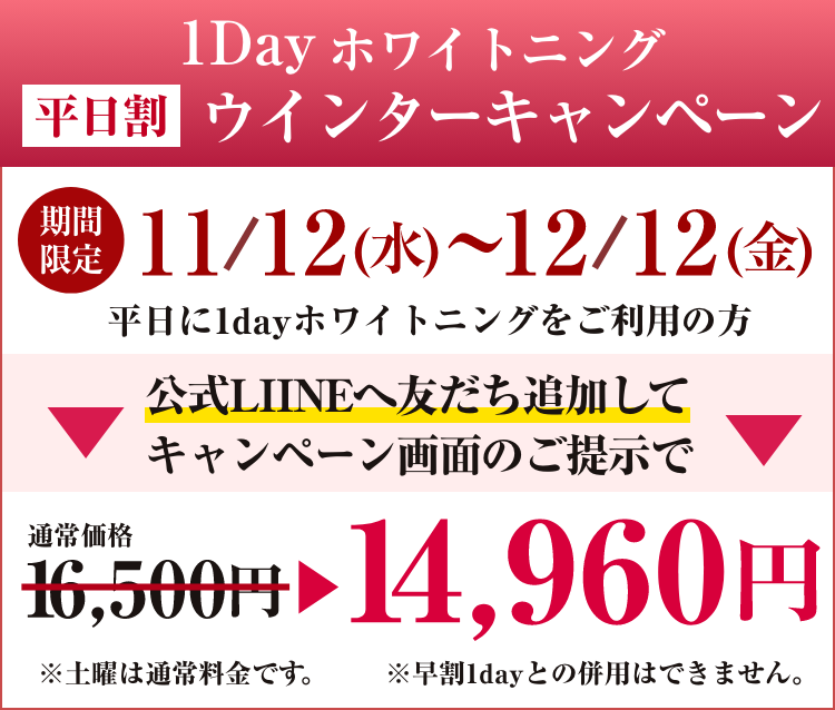 ※ホワイトニングは高校卒業程度からご利用いただけます。