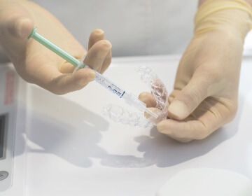 現在の歯の色と薬剤の使用期限について確認します。また、ご自宅でのホワイトニングの仕方と注意事項についてしっかり説明し、セットの一式をお渡しします。