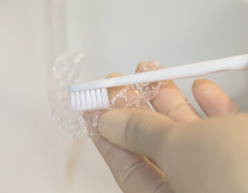 マウスピースは歯ブラシを用いてしっかりとお手入れし、常に清潔な状態を保ちます。